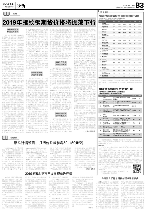 ■ 钢铁行情预测:1月钢价跌幅参考50~150元/吨