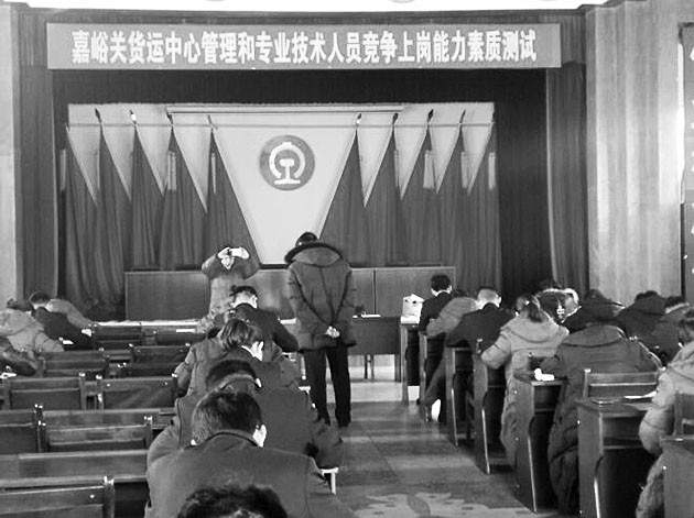 本报讯 (通讯员何应霞刘登成摄影报道)近日,兰州铁路局嘉峪关货运中心积极推进岗位化管理工作,对缺员的一般管理和专业技术岗位组织进行竞争上岗,通过资格审查、能力和素质测试、能力和素质测评、组织考察和集体讨论等环节,将优秀员工选拔到管理和专业技术岗位。