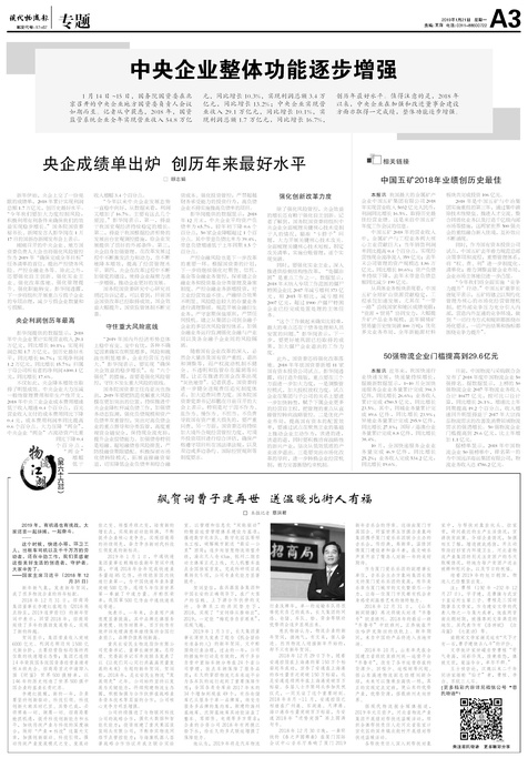 □ 顾志娟 新年伊始,央企上交了一份亮眼的成绩单,2018年累计实现利润总额1.7万亿元,创历史最好水平。“...