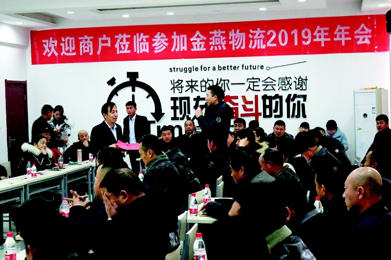 洛阳金燕物流有限公司董事长张燕在讲话中感谢广大商户对金燕物流今后的发展提出的宝贵意见和建议。她认为:园区的发展壮大离不开各位商户的大力支持。其中有一部分商户是在园区开业时就入驻的老商户,他们几年来与园区同甘共苦。一路走来,他们对园区的建设与发展提出过许多卓有见地的意见和建议,为园区的兴旺与发展做出过突出贡献。对此,她代表园区对这些商户表示由衷的感谢和崇高的敬意。她认为,在今后的工作中园区要一如既往地认真听取商户的意见和建议,努力做好自己应该做的工作,为广大商户提供更加优越的经营环境,争取更加宽松的优惠政策,为推动洛阳物流事业的发展做出各自应有的贡献。2019年重点要做好以下三面的工作:一是在去年与银行初步合作的基础上,加大与金融机构的合作力度,继续为商户提供贷款服务,解决广大商户的贷款难问题。二是加快新能源车充电桩的建设速度,争取3月底全部安装到位,投入使用。三是积极筹备《洛阳金燕物流》报的出版发行工作,为广大商户提供一个宣传企业、展示自己的平台,打造具有亲和力和鲜明特色的金燕物流企业文化。
