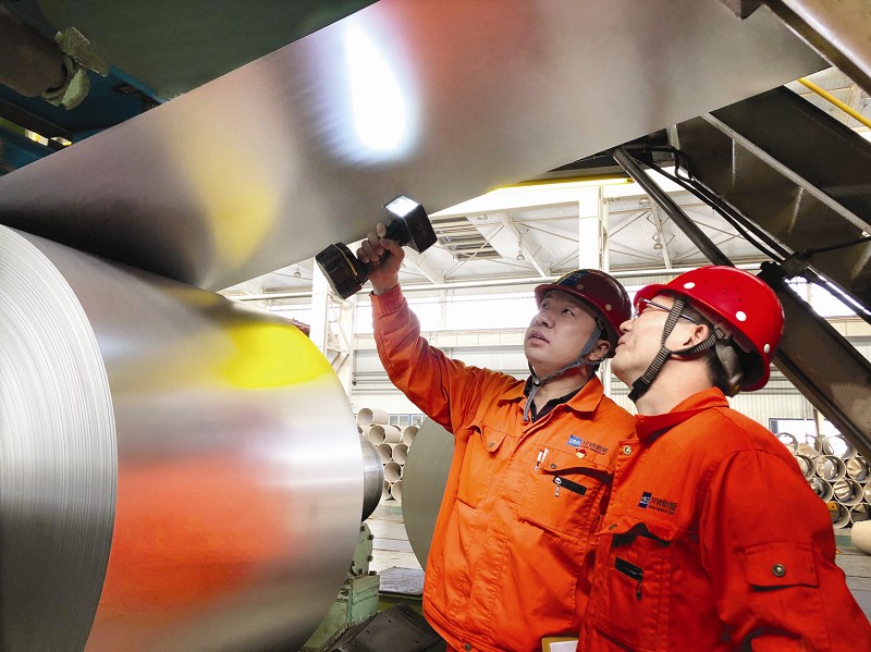 本报讯 (通讯员 张江华 摄影报道)河钢衡板从提高产品档次、优化工艺流程、岗位创新创效等方面组成攻关小组,通过小微创效、设备改造、工艺创新等,在提升产品质量、性能和交货期等关键问题中发挥关键作用。元月份以来,完成镀锡边缘罩、平整延伸率等课题攻关11项。 图为技管人员正在进行提升高附加值镀锡产品表面质量的课题攻关。