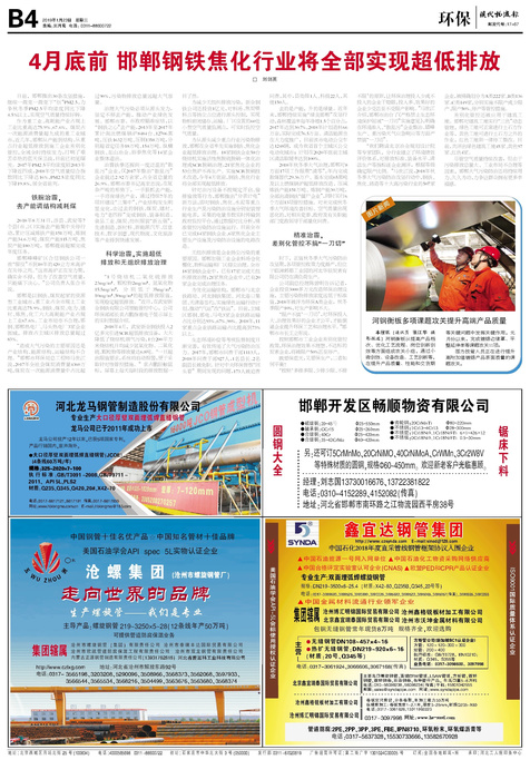 ■ 4月底前邯郸钢铁焦化行业将全部实现超低排放