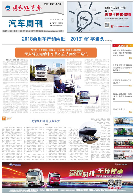 □ 施芸芸 2018年,中国汽车产业遭遇近28年来的首次负增长,不过出口重回百万辆成为其中的亮点之一。中国...