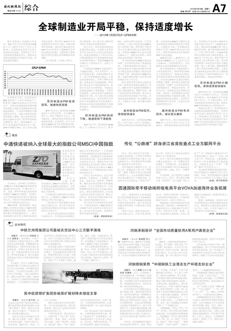 据中国物流与采购联合会发布,2019年1月份全球制造业PMI较上月小幅回升0.3个百分点至52.4%。美国制造业的回...