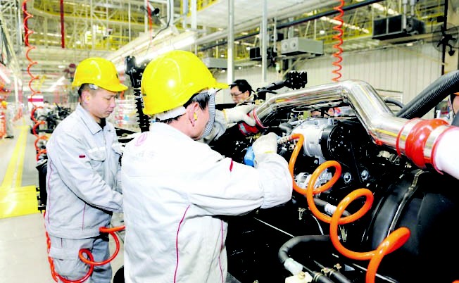本报讯近日,东风商用车有限公司生产车间一片忙碌,各条生产线正开足马力生产,奋力实现开门红。据了解,为打造国际化商用车制造标杆工厂,去年6月,东风商用车有限公司原总装配厂和车架厂正式合并成立新的车辆工厂。2019年新工厂建成后,将支撑起东风商用车有限公司“十三五”发展战略,实现年销售收入500亿元,税收30亿元。(全正)