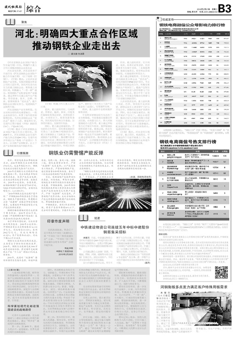 ■ 河北:明确四大重点合作区域推动钢铁企业走出去