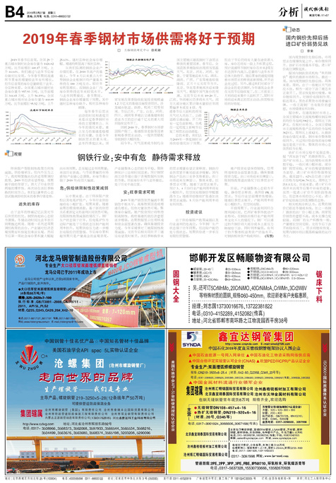 ■ 2019年春季钢材市场供需将好于预期