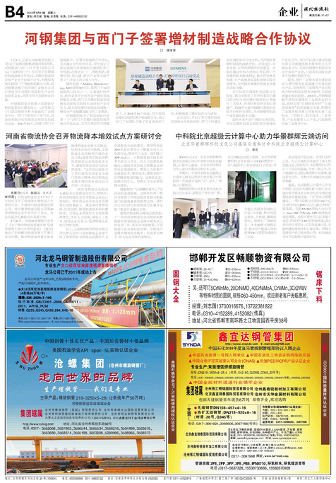 ■ 河钢集团与西门子签署增材制造战略合作协议