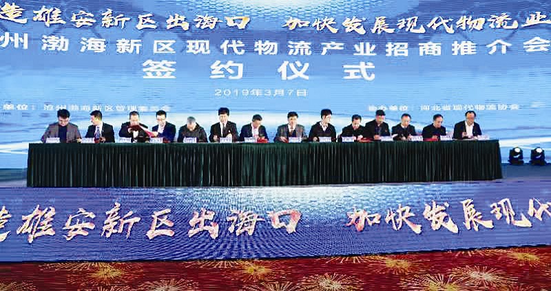 本报讯 (记者李纪澜通讯员张润增)3月7日上午,沧州渤海新区举行现代物流产业招商推介会,来自国内外的180余家物流企业、代表参会。会上,黄骅港散货港区通用散货码头项目、黄骅港综合港区集装箱物流园项目等21个项目签约,总投资143.34亿元。