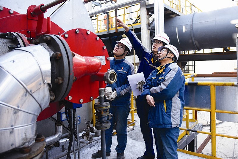 本报讯(记者胡智慧摄影报道)3月15日,马钢化工能源公司设备管理人员在煤气合并净化系统硫回收、洗涤单元检查设备调试运行状况。