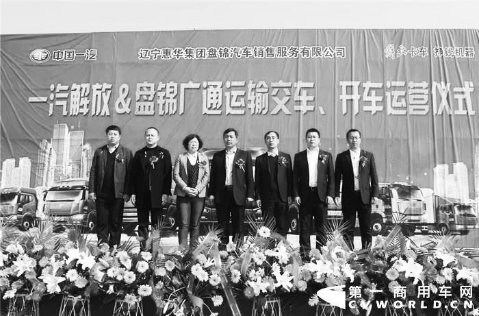 本报讯近日,辽宁惠华盘锦解放4S店与盘锦广通汽车运输有限公司,100辆危化品牵引车交车、开车仪式在盘锦辽东湾新区顺利举行。