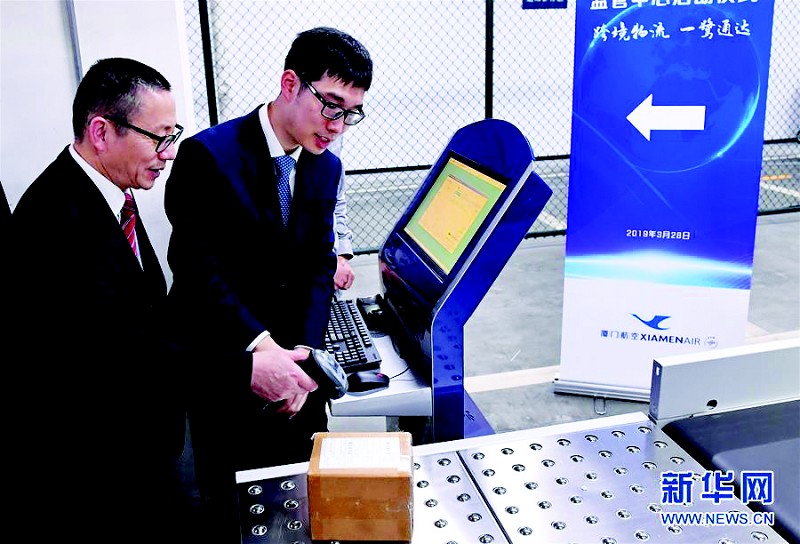 新华社电 (新华社记者 林善传 摄影报道) 3月28日,厦门机场跨境电商监管中心正式启用,可实现跨境电商货物就地理货、快速通关及无缝中转,为厦门跨境电商零售直邮货物开启“绿色通道”。