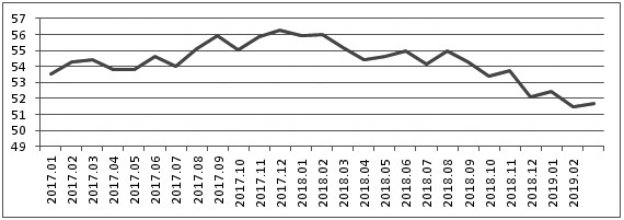 2019年3份,非洲制造业PMI为50.7%,较上月回落0.4个百分点。一季度,非洲制造业PMI均值为51.6%,较2018年四季度回落0.4个百分点。从主要国家看,尼日利亚制造业保持较快增长,指数水平维持在57%以上的较高水平,其他主要国家制造业PMI相对偏弱。指数变化显示,非洲制造业保持适度增长,增速稍有放缓。从PMI历史数据变化看,非洲制造业PMI连续6个月稳定在50%以上,意味着非洲经济增长的连续性依然较强。非洲发展银行的报告显示,预计2019年非洲经济增长率将达到4%,高于2018年的3.5%,表明非洲经济增长潜力仍在提升。