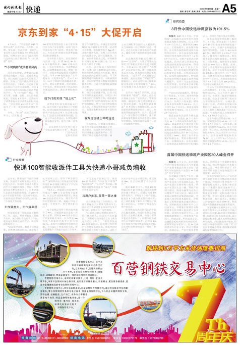 本报讯 2019年3月份,中国物流与采购联合会发布的中国快递物流指数为101.5%,比上月回升4.9个百分点,重新...
