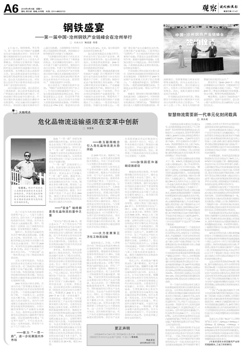 □ 本报记者 何文忠 任宏 4月11日,细雨绵绵,草长莺飞,第一届中国·沧州钢铁产业链峰会在沧州渤海酒店举...