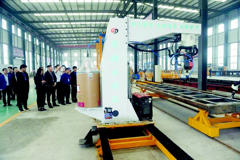 9点28分,代表们分别乘坐中巴车,抵达河南昊搏专汽厂区进行参观。在该公司副总经理牛建岒带领下,大家参观了昊搏专汽生产的部分成品和半成品。在机器人生产线旁边,大家兴致勃勃地围观,好奇的仔细查看传说中最为先进的生产工艺流程。