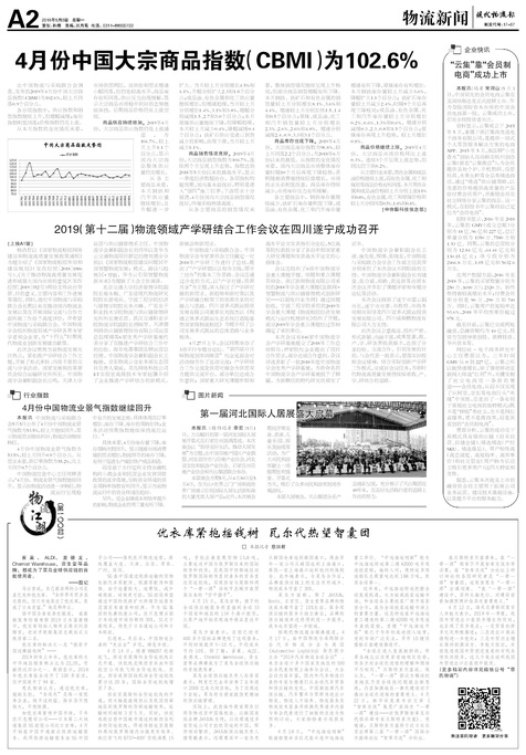 由中国物流与采购联合会调查、发布的2019年4月份中国大宗商品指数(CBMI)为102.6%,较上月回落0.9个百分点...