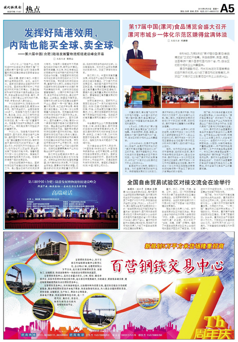 □本报记者 常河山 5月17日,以“陆港产业、物流枢纽——区域经济发展新引擎”为主题的第六届中国(合肥)陆...