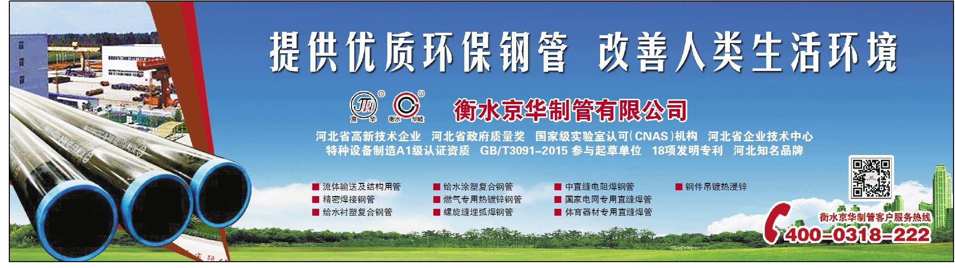 河北省高新技术企业 河北省政府质量奖 国家级实验室认可(CNAS)机构 河北省企业技术中心特种设备制造A1级认证资质 GB/T3091-2015 参与起草单位 18项发明专利 河北知名品牌
