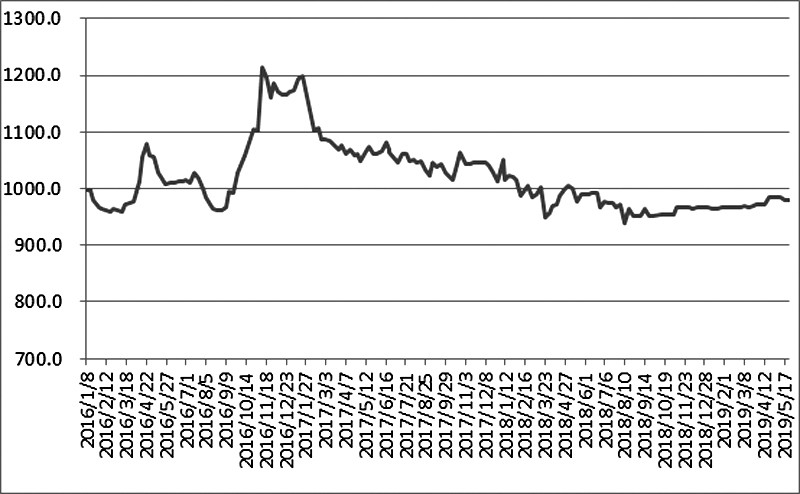 本周(2019年5月20日~5月24日),由中国物流与采购联合会和林安物流集团联合调查的中国公路物流运价指数980.28点,环比回升0.03%。