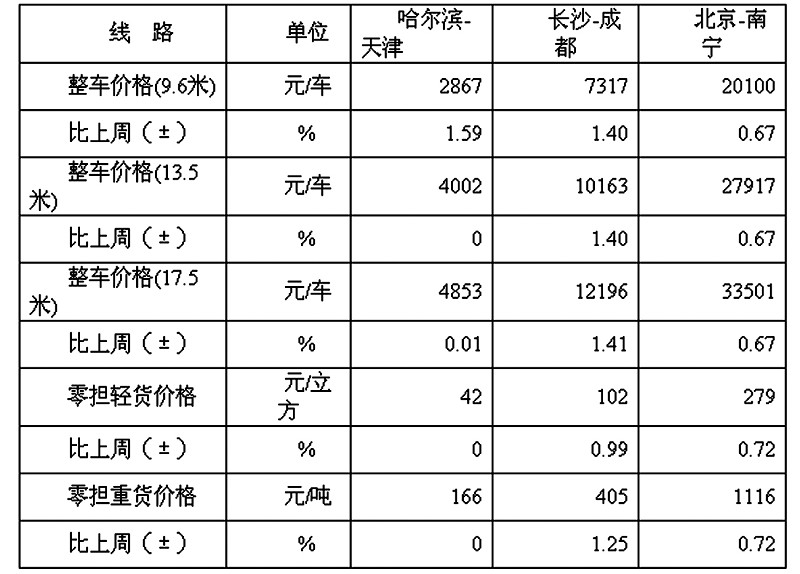 分车型看,各车型指数涨跌互现。其中,整车指数为983.16点,环比回升0.06%;零担重货指数为982.76点,环比回落0.02%;零担轻货指数为968.45点,环比回落0.04%。