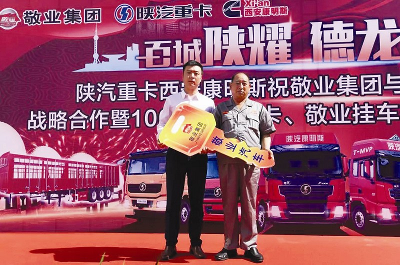 本报讯 5月22日,敬业集团与君行天下集团战略合作暨100台陕汽重卡、敬业挂车交付仪式在河北敬业专用汽车院内隆重举行。集团总经理李慧明、副董事长王国太、副总经理张觉灵、专用汽车总经理马文军、君行天下董事长张勇军、君行天下河南君腾公司总经理童义威等出席了仪式。