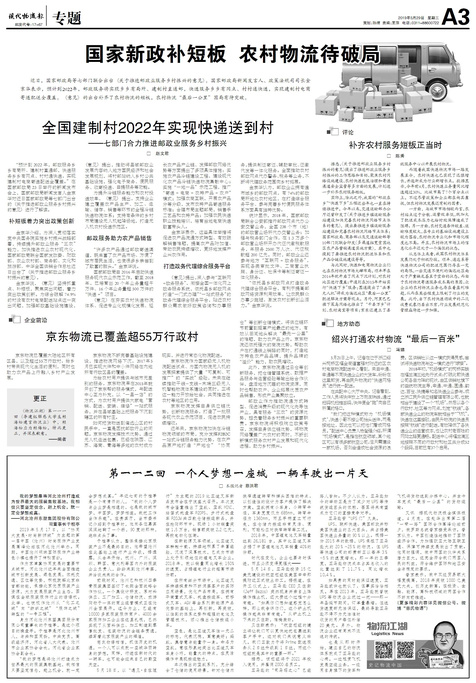 □ 赵文君“预计到2022年,邮政服务乡乡有局所、建制村直通邮,快递服务乡乡有网点、村村通快递,实现建制村...