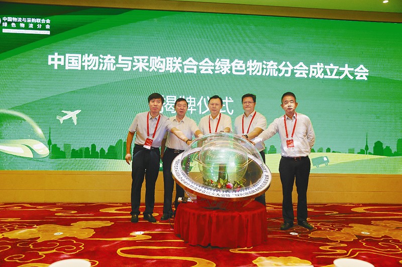何黎明会长、任豪祥副会长、张江波副司长、刘武董事长、王正刚CEO共同为绿色物流分会揭牌。