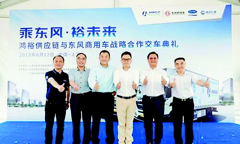 本报讯 6月12日,以“乘东风·裕未来”为主题的鸿裕供应链与东风商用车战略合作交车庆典在鸿裕供应链位于上海闵行的物流中心举行。上海鸿裕供应链管理有限公司总经理彭博携全体员工、东风商用车有限公司营销公司副总郑洪波、开利运输冷冻(中国)大中国区总经理高戈、中国物流与采购联合会医药物流分会执行副会长秦玉鸣、镇江飞驰汽车集团有限责任公司总经理黄俊以及相关部门领导出席了本次庆典。