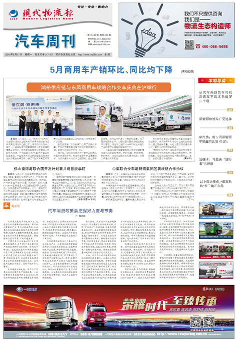 本报讯 6月12日,以“乘东风·裕未来”为主题的鸿裕供应链与东风商用车战略合作交车庆典在鸿裕供应链位于上海...