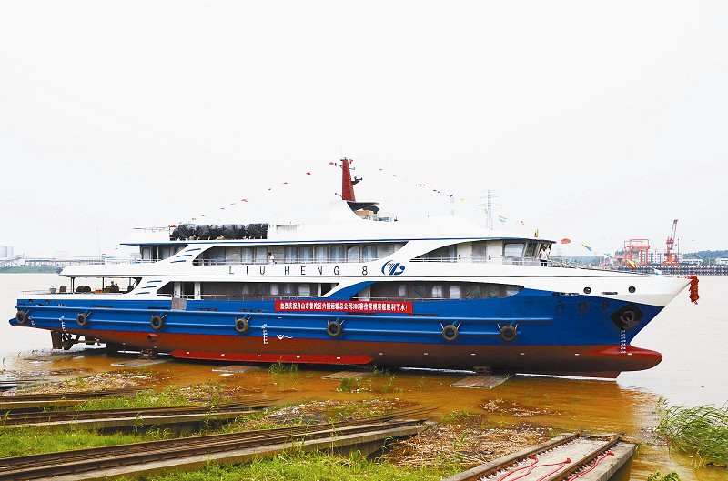 本报讯(特约记者胡富君 通讯员胡兰摄影报道)6月12日,湖南湘船重工有限公司(长沙船舶厂)“双喜连门”:上午9时38分,舟山市普陀区六横运输总公司380客位“六横8号”客轮顺利下水;10时18分,舟山市普陀区东极海运有限公司690客位“舟山群岛昌盛号”客轮开工建造。 今年前五个月,该公司交付新船5艘,艘量及自重总吨位量创下历史同期最高纪录。 图为380客位“六横8号”客轮顺利下水。
