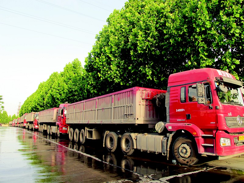 图1 排着长龙的汽车等待着装运处理过的钢渣