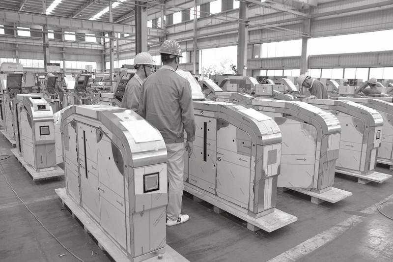 本报讯(特约记者杨木军摄影报道)6月21日,江苏无锡市锡山区一家金属制品企业为青岛地铁8号线制作54台检票闸机机柜按期发货