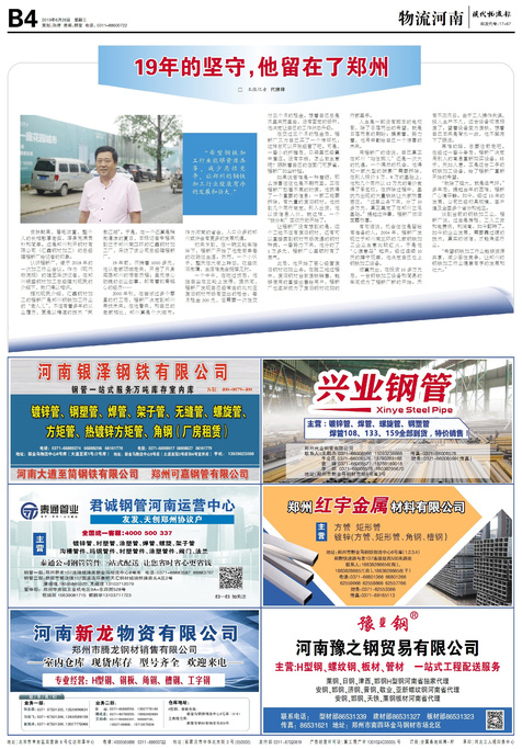□ 本报记者 代振锋 “希望钢铁加工行业能够资源共享,减少恶性竞争,让郑州的钢铁加工行业健康有序的发展...