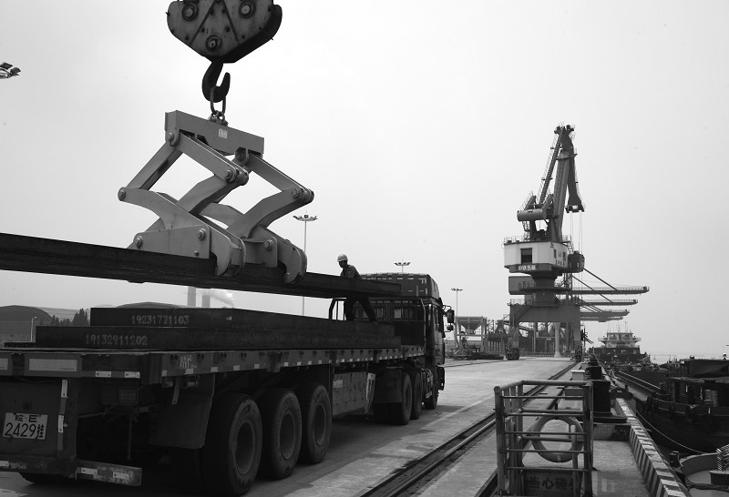 本报讯(记者胡智慧 通讯员束晓光摄影报道) 6月27日,坐落在安徽省马鞍山慈湖高新区的安徽省慈湖港务有限公司港口正在吊装供应马钢的钢坯,船来车往,一片繁忙景象。