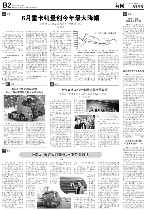 本报讯 7月1日,部分城市正式实施国六排放标准,重卡行业再次迈入新征途。国六来临,环保先行,上汽红岩全...
