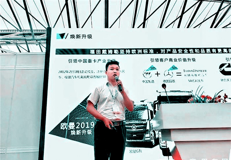华东分公司客户开发经理郑勋对欧曼超级重卡进行了解读。