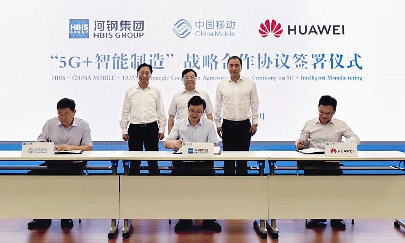 本报讯 (特约记者魏清源)7月18日,河钢集团、中国移动、华为公司在石家庄就联手打造钢铁行业“5G+智能制造”标杆签署战略合作协议。三方将基于河钢应用场景,成立联合研发机构,融合5G、人工智能、大数据、云计算等新一代信息技术,共建工业互联网平台,实现“5G+智慧工业园区、5G+智慧工业港口、5G+智能工业制造”三个领域的技术突破,促进钢铁制造向网络化、智能化、数字化转型,实现高质量发展。