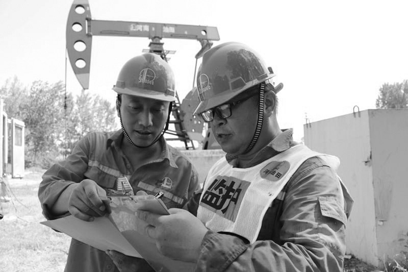 图为7月28日,在3203井进行抽油机加固施工前,HSSE管理人员、施工方、监护人员现场确认后在维修作业票上签字,确保夏季施工安全平稳运行。