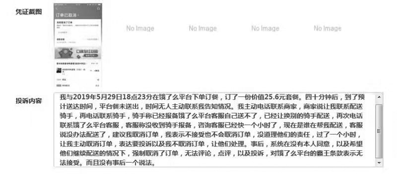之后,让林先生没有想到的是,饿了么平台系统在没有经林先生同意的情况下,强制取消了订单,而且无法评论、点评和投诉。