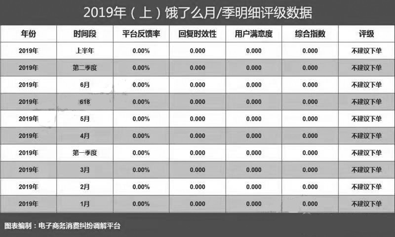 据网经社“电商消费评级数据库”显示,2019年上半年,饿了么累计获10次“不建议下单”消费评级,获“建议下单”为0。据电子商务消费纠纷调解平台用户投诉案例库显示,涉及投诉较多的平台有饿了么,除食品质量问题外,饿了么还存在配送效率低、地址无法更改以及单方面取消订单等问题。