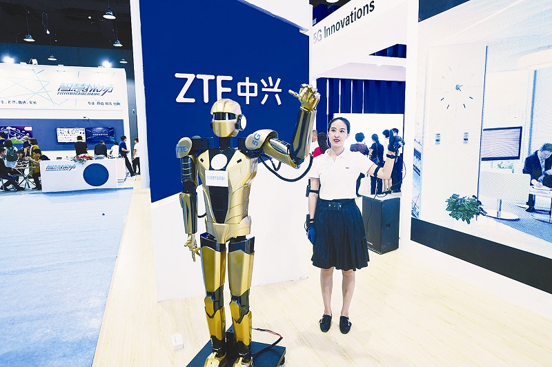 本报讯 8月12日,第四届中国创业创新博览会在内蒙古自治区乌兰察布市开幕。博览会为期5天,主题为“5G改变社会科技引领未来”,博览会期间将举行主题展览、5G应用创新论坛、创新项目对接会等活动。 图为工作人员在展示智能机器人。 (李志鹏)