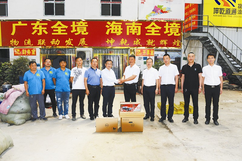 下午1点18分,不顾旅途劳顿,胡晓冬一行查看了受灾后的坤乾道通物流。询问受灾情况,查看目前的企业运营,并代表一汽解放为坤乾道通送来了电脑及红旗车模等慰问物资。