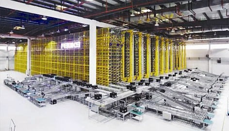 巨大的仓储库房里,智能AGV机器人来回穿梭分拣货物,机器手和堆垛机运转不息整理货架……一切都井井有条,唯独看不见几个人。