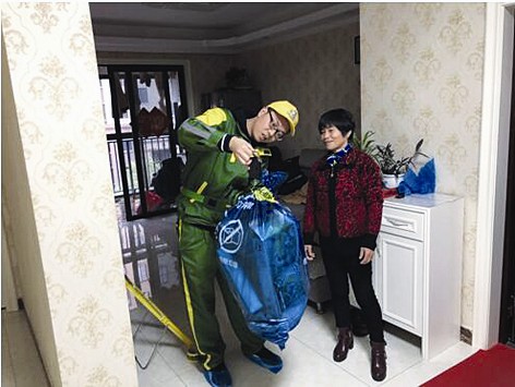 3.分类投放。居民根据干湿两分手册,将小件干垃圾投放至专用虎哥回收垃圾袋中。居民未进行正确的垃圾分类的,虎哥再行予以分类。
