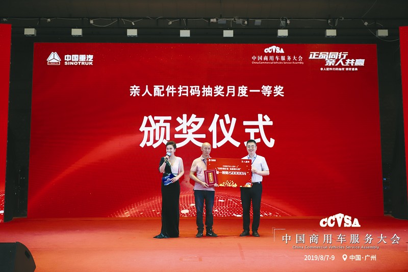 7月下旬,中国重汽集团济南地球村电子商务有限公司举行“正品同行,亲人共赢”亲人配件扫码抽奖启动盛典,首弟雄遇到了人生中的第一个“小幸运”。盛典期间,“扫码赢红包,注册赢大奖”活动6月份(月度)获奖名单现场揭晓,首弟雄喜中一等奖,获5万元现金奖励。