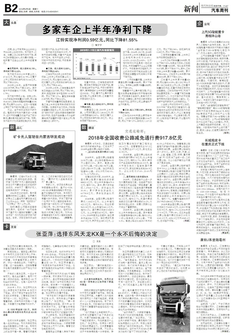 □ 张宁宁 近期,各上市商用车企业纷纷公布2019年上半年财报。东风轻卡、江淮、华菱以及江铃净利润均下降...