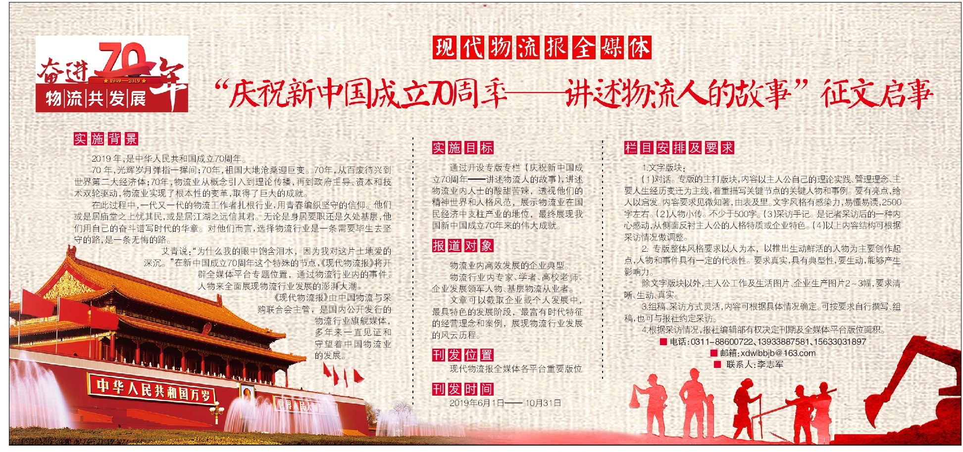 “庆祝新中国成立70周年——讲述物流人的故事”征文启事