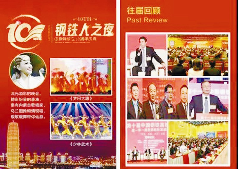 姚红超还介绍了活动当日同期举行的庆祝中钢网成立10周年的主题活动。他说,为了感谢社会各界、国内钢铁上下游企业对中钢网的关注和支持,也为了对前进中的中钢网做个继往开来的总结和展望,活动当天晚上,将举办主题为“钢铁人之夜”的大型庆祝晚会,邀请《套马杆》 《高原蓝》等歌曲的原唱、著名歌手乌兰图雅及诸多文艺界人士为庆典活动助兴。