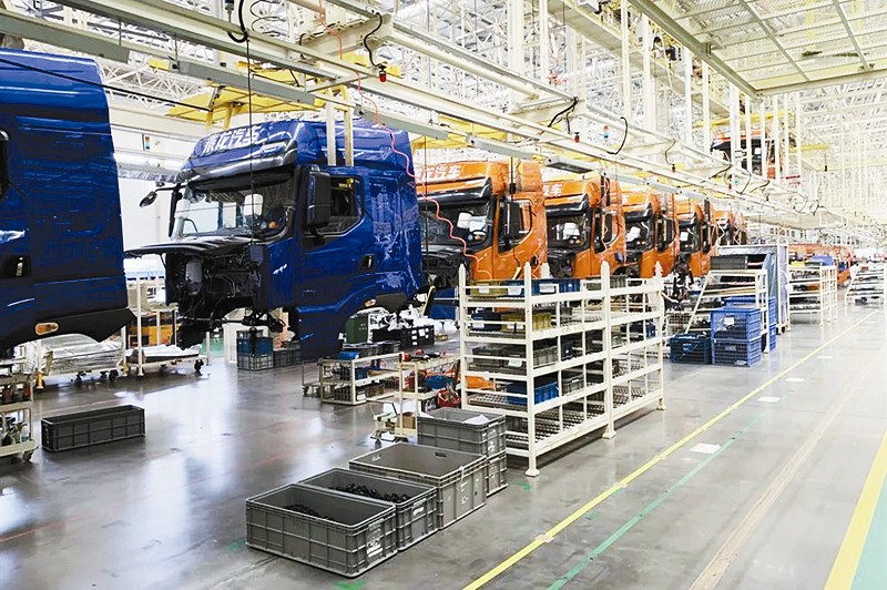 在东风柳汽相关工作人员的带领下,考察团首先参观了东风柳汽柳东商用车基地,近距离体验东风柳汽先进生产工艺和产品品质。柳东商用车基地目前已投入使用,占地面积约3191.5亩,可达成10万辆/年中重卡生产能力,包括冲压、焊装、涂装、总装四大工艺以及车桥、液压油缸等零部件配套生产能力。